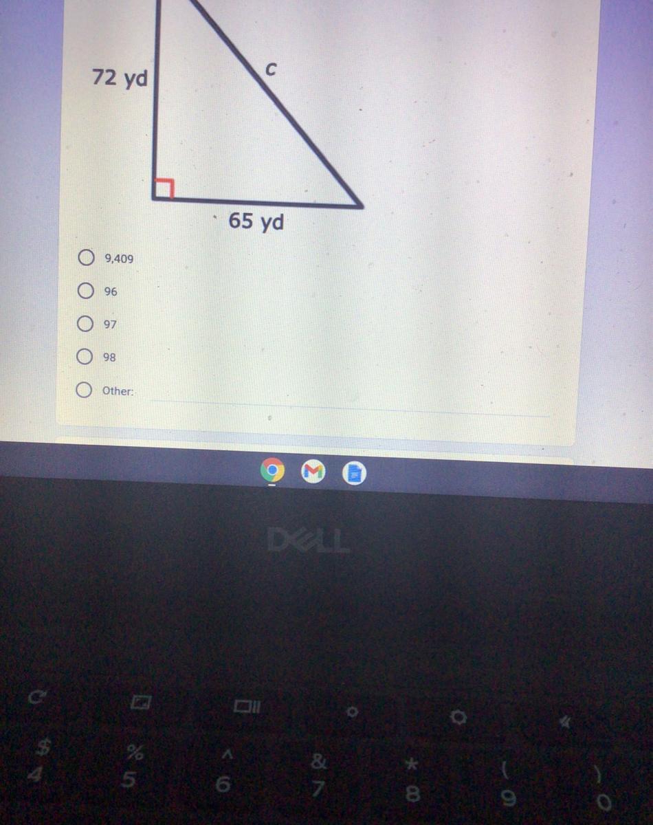Use Pythagorean Theorem which is a squared (one of the numbers thats side is with the 90° angle) plus b squared (the other number thats side is next to the 90° angle) equals c squared (the hypotenuse).