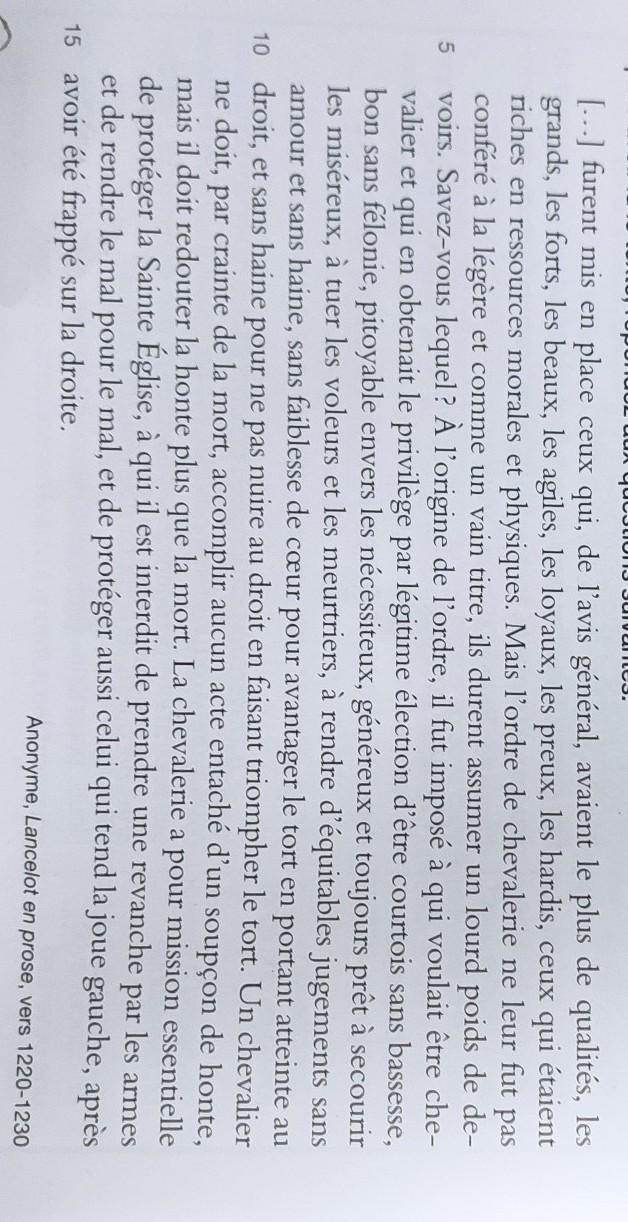 En d'autres termes: En utilisant différentes couleurs, surlignéz les éléments du texte qui indiquent les trois fonctions qui établissent un lien entre le chevalier et les autres couches sociales et résumez-les schématiquement