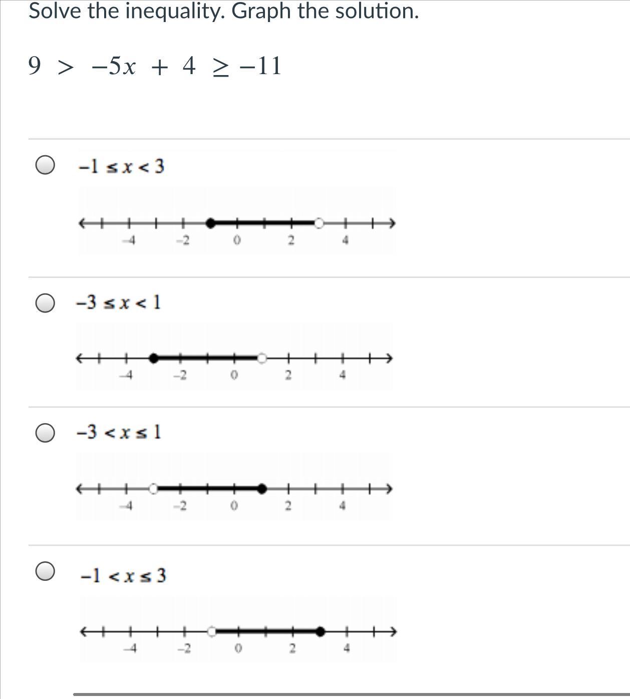 -1 < x ≤ 3 (Divide -5 on both sides)