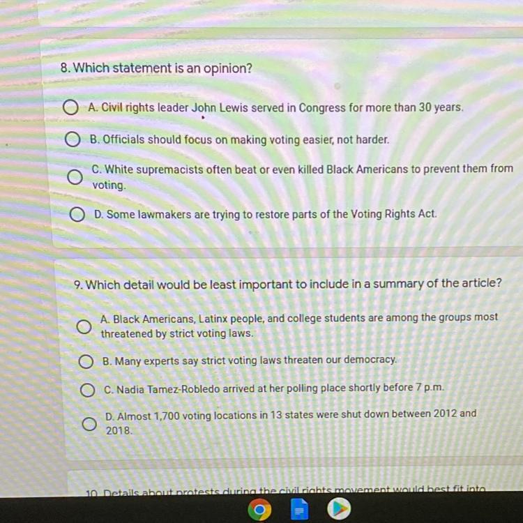 Other questions: