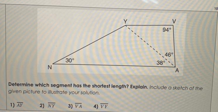 ok the triangle we are working with is YAV. in this triangle, the segment VA is the shortest