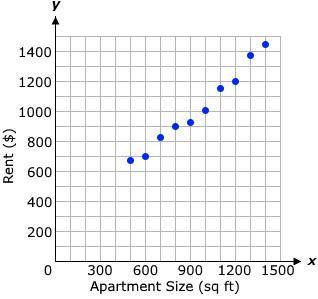 Juan researched the cost of rent and the size of several apartments. He recorded the data in a scatterplot. Which of the followi