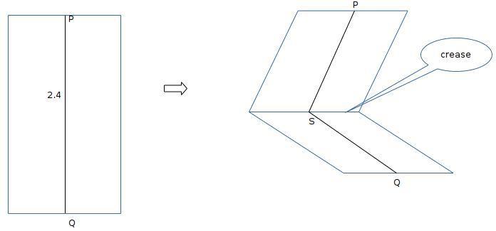 so... if Julia folded the paper, in a way that P was on top of Q, that means the crease is running through the half-way point or midpoint, that means that, if the segment PQ is 2.4, the segments on either side of the crease, PS and QS are both two equal halves.