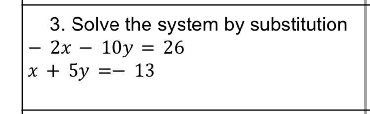 Solve the system by substitution − 2x − 10y= 26 x+ 5y=− 13