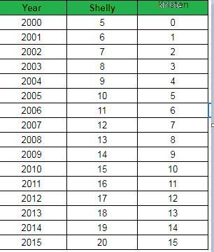 a.We have to make a table showing ages of Shelly and Kristen.