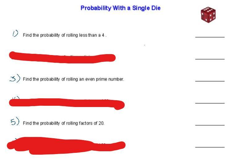 <u>Probability Outcomes</u> = 1, 2, 3, 4, 5, 6