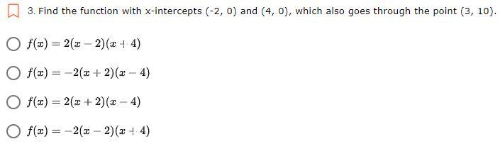 Let the general form of quadratic equation be The function passes through the intercepts and and also passes though the point Substituting the points , and in the equation , we get, -----------(1) ----------(2) -----------(3)
