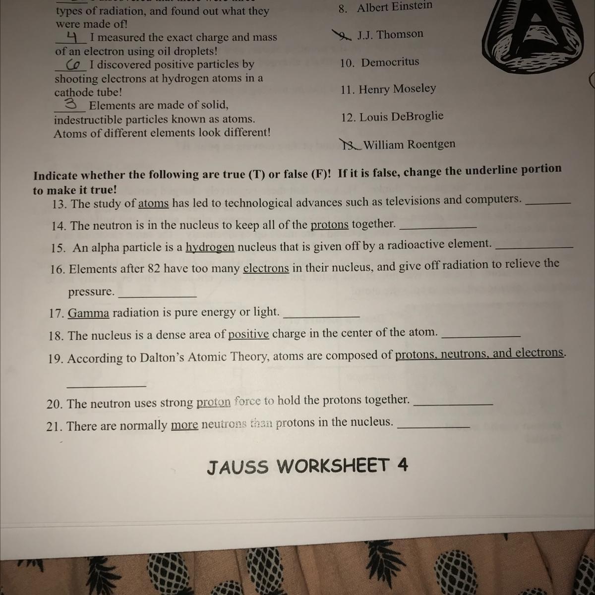 1.) protons neutrons and electrons