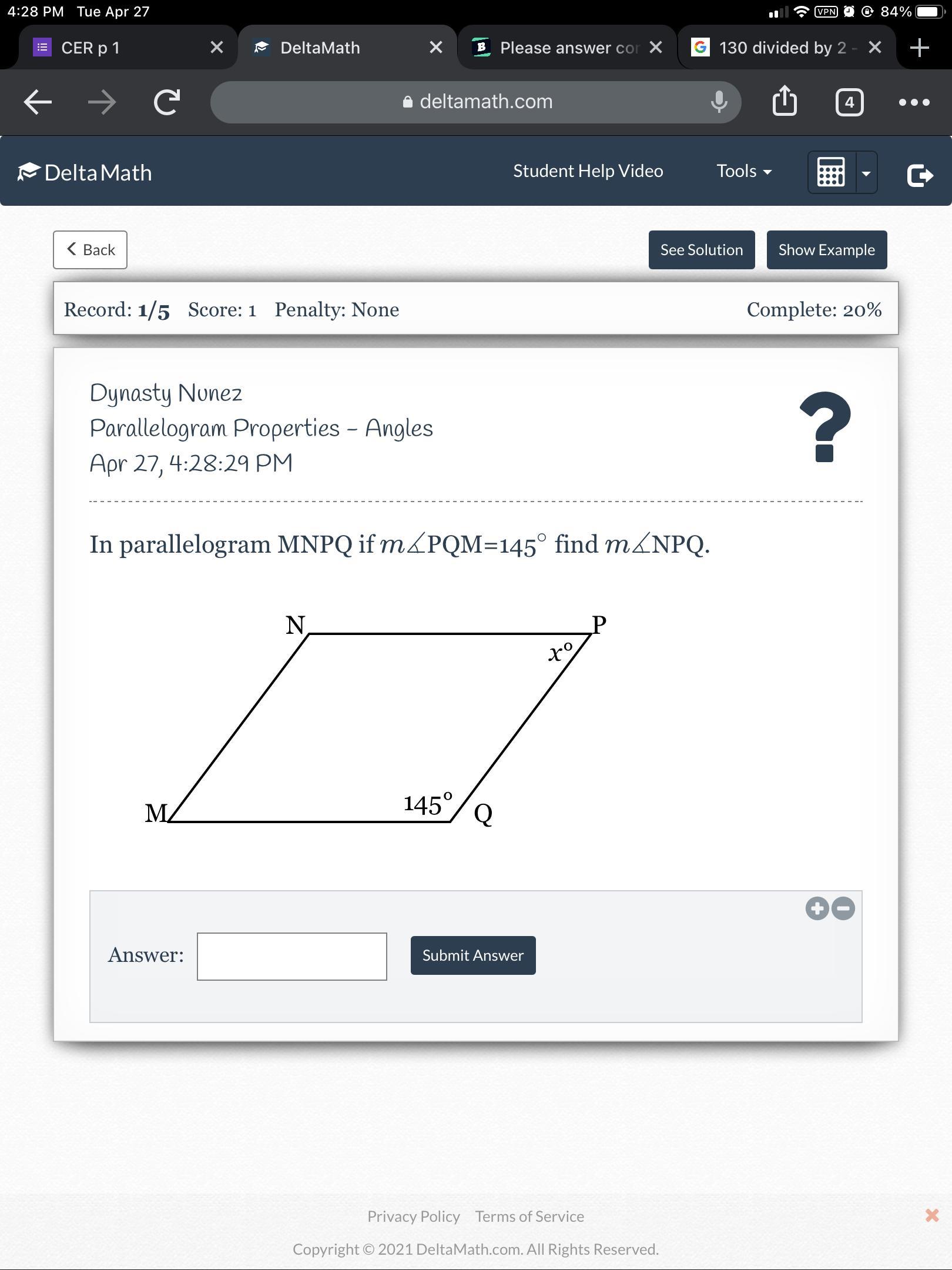 .. 2*84.5/13 = h = 13 . . . .solve for h