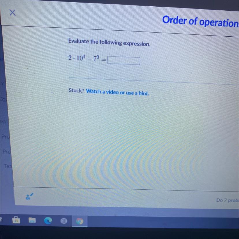 Start with the first number in the top row, and block off the row and column. A 2x2 matrix will be left. Find the determinant of this 2x2 matrix, and multiply it by the number in the top row.