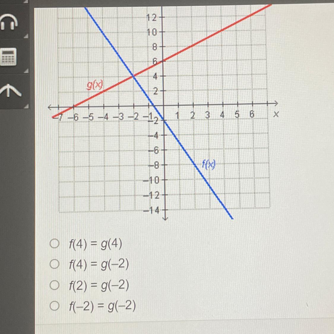 From the given graphs it is clear that the graphs of the functions interest each other at point (-2,4). It means,