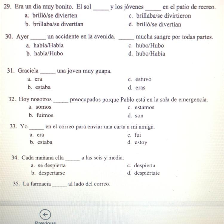 the first one is d the second one is c the 3rd is a the 4th is c the 5th is c and the 6th is a and you didn't show the last one
