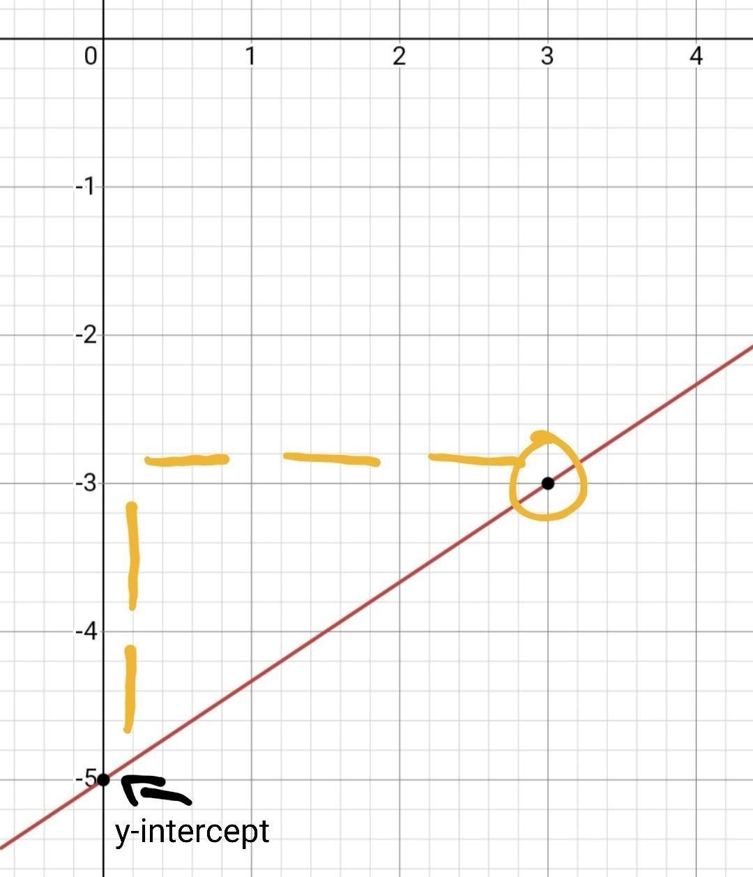 The b is the y-intercept which is the point where the line crosses from one side of the graph to the other horizontally. You can see at -5, that is where that happens.