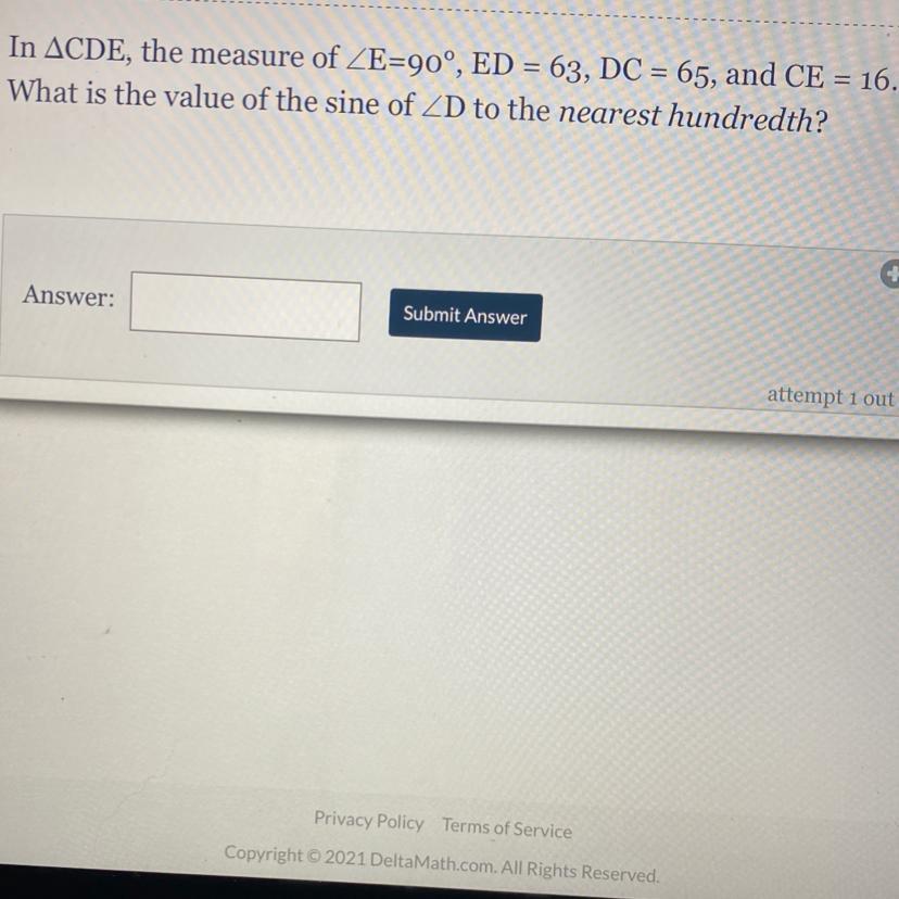 Since we are given CE = 16 and ED = 63, I have attached a diagram showing this triangle.