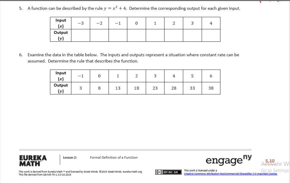 For question 5, you should substitute the different values of x into the equation y =x^2 +4