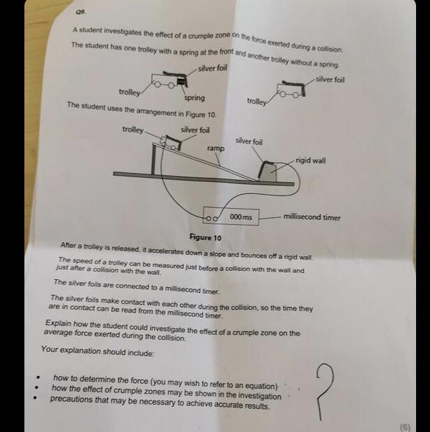 how to determine the force (you may wish to refer to an equation) how the effect of crumple zones may be shown in the investigation precautions that may be necessary to achieve accurate results.