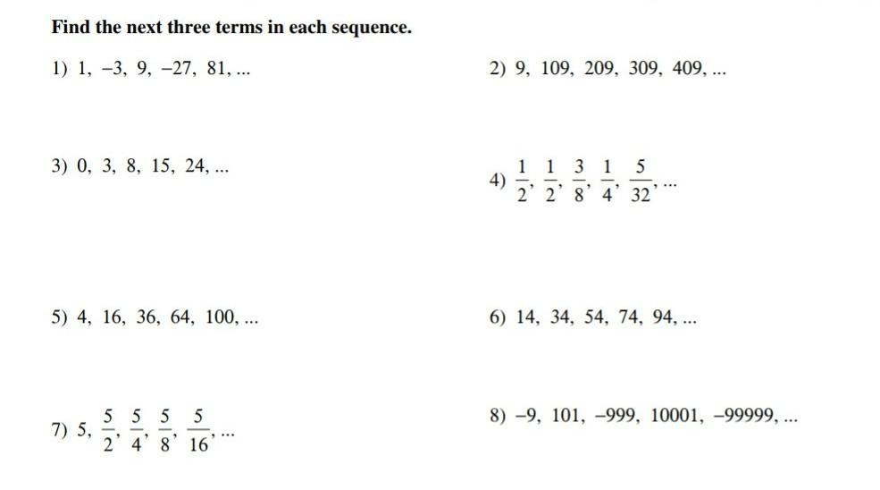 1) 1 , -3 , 9 , -27 , 81 ,...........