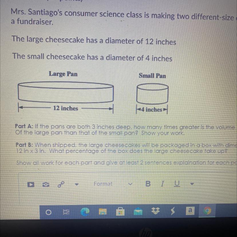 ✔️To determine how many times the volume of the large pan is greater than the small pan, divide the volume of the larger by the smaller: