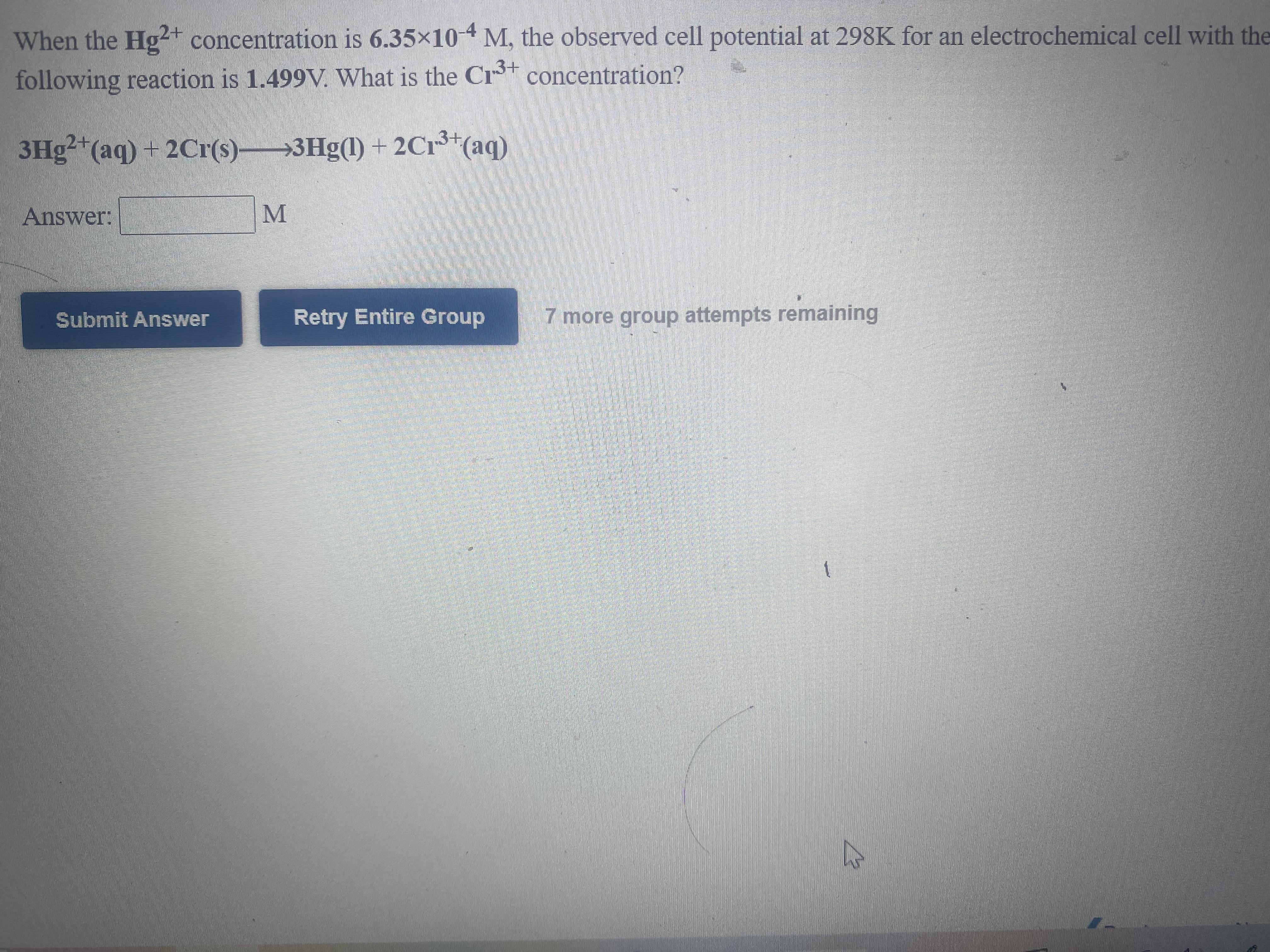 1.499 = 1.59 - 0.0592/6 log [Cr^3+]/6.35x10^-4