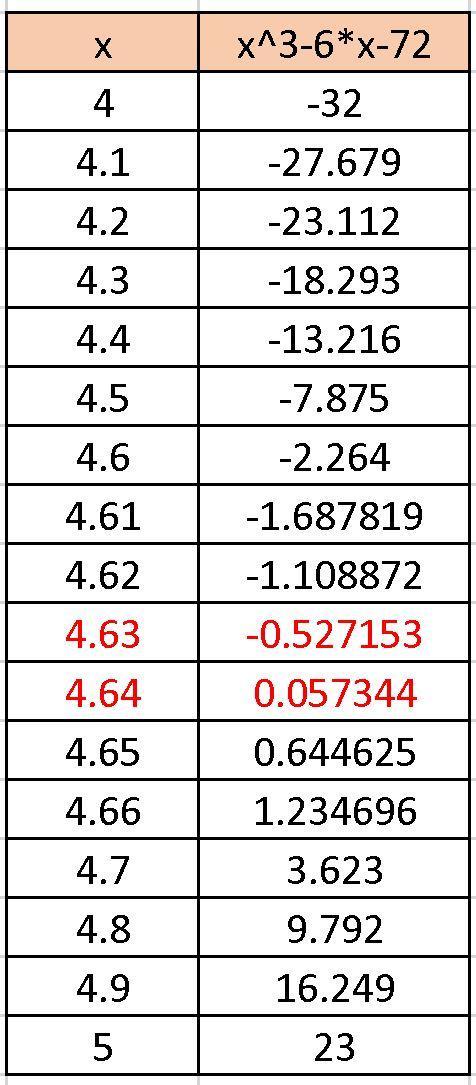 see the attachment, we can find the 0 value of x is between 4.63 and 4.64