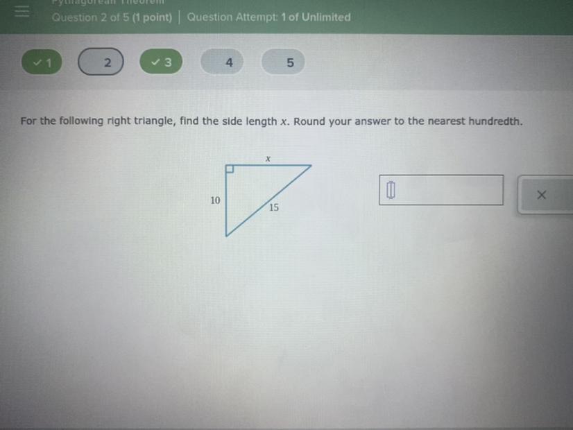 According to the Pythagorean Theorem; (Leg1)² + (leg2)² = (Hypotenuse)²
