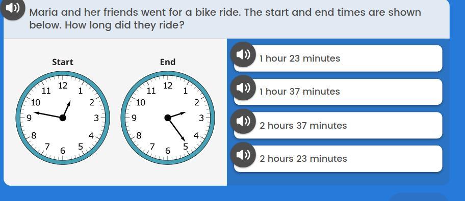 Maria and her friends went for a bike ride the start and the end times are shown below
