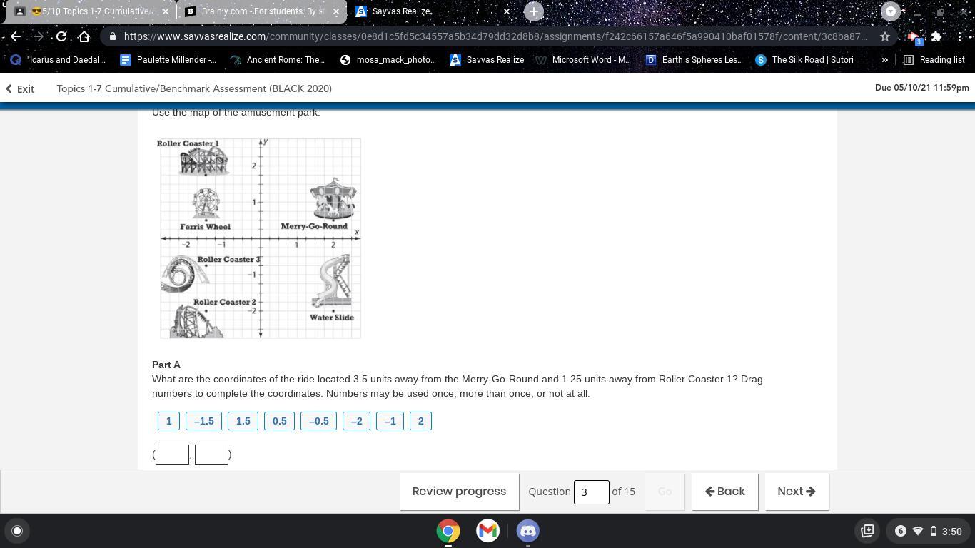 rag numbers to complete the coordinates. Numbers may be used once, more than once, or not at all.