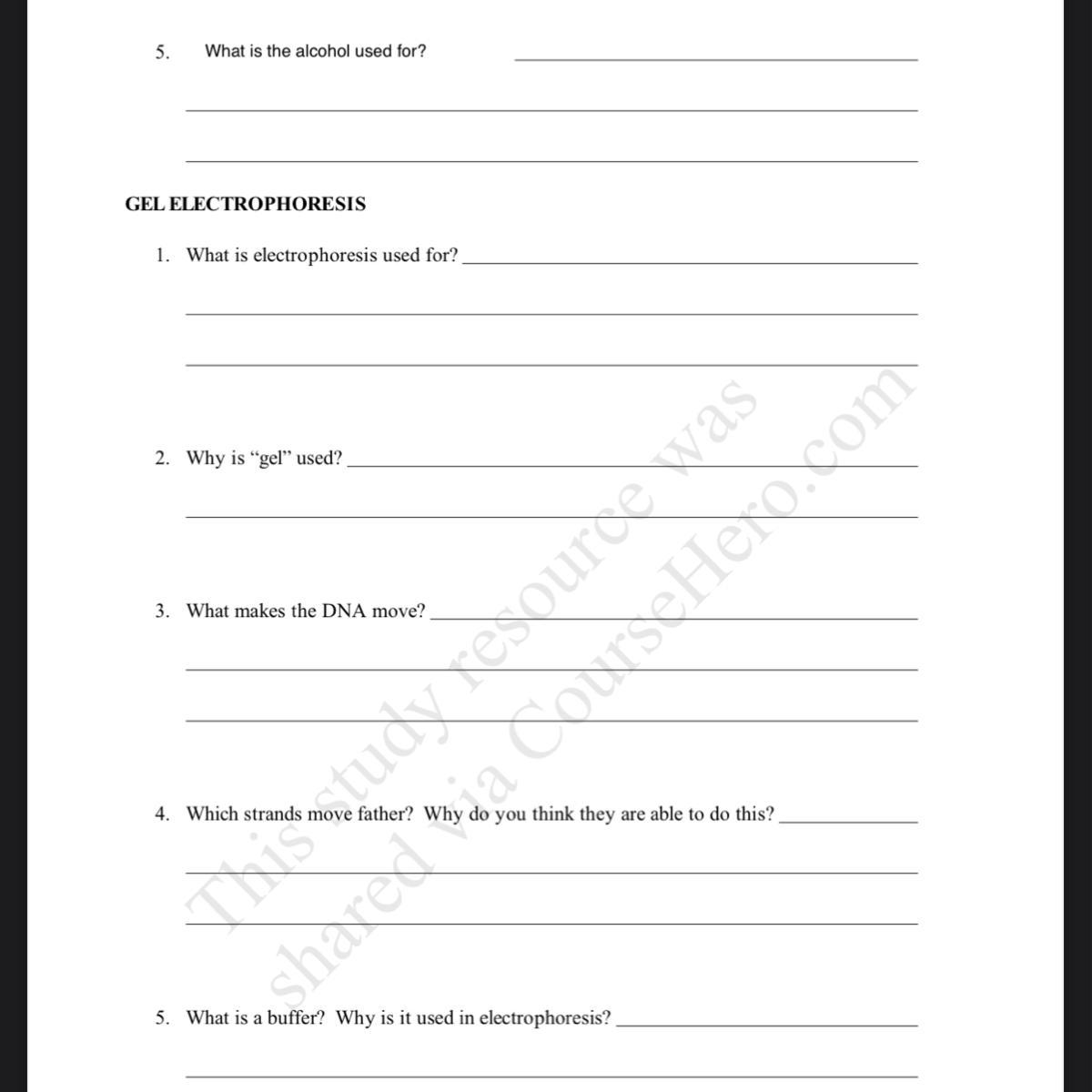 <em>4.DNA is negatively charged, therefore, when an electric current is applied to the gel, DNA will migrate towards the positively charged electrode. Shorter strands of DNA move more quickly through the gel than longer strands resulting in the fragments being arranged in order of size.</em>
