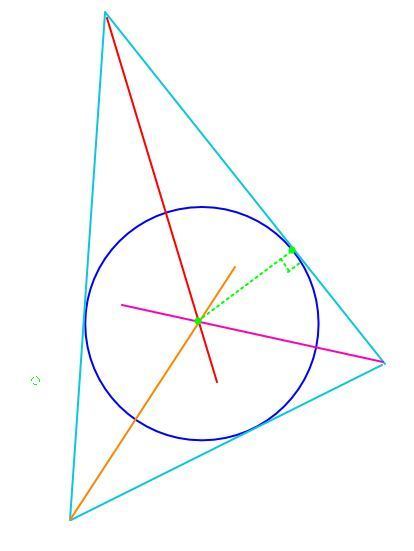 ii) Draw a perpendicular line segment from the incenter to one of the sides. Let the intersection of the perpendicular from O and the side be T.