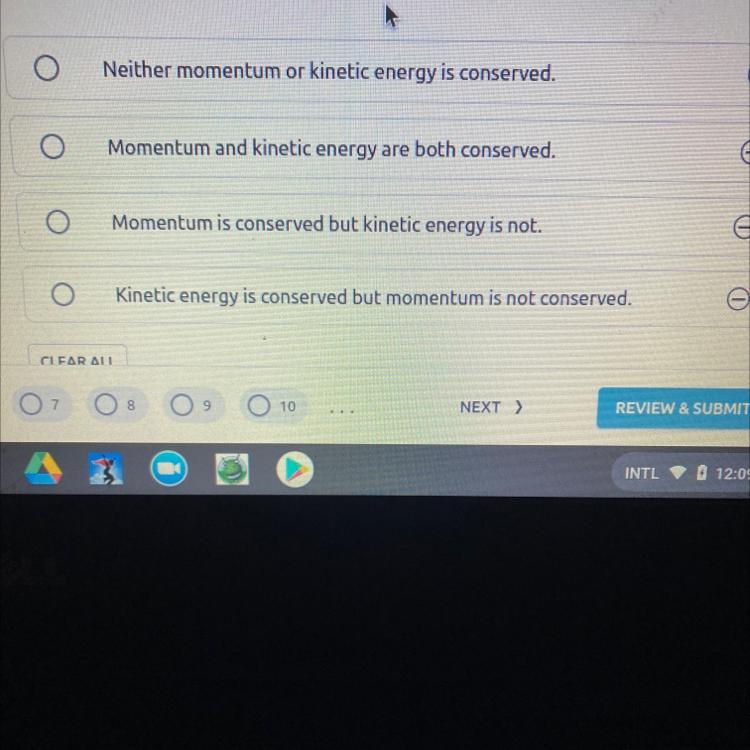 The question relates to the verification of the conservation of linear momentum, and kinetic energy