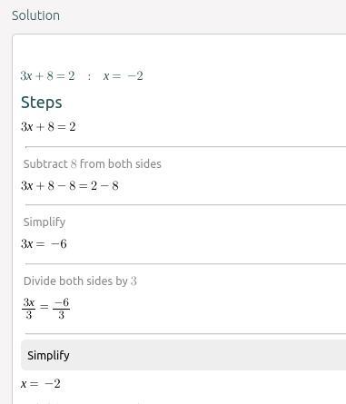 Solve the system of equations below. 3x +8= 2 7x + 3y = 1
