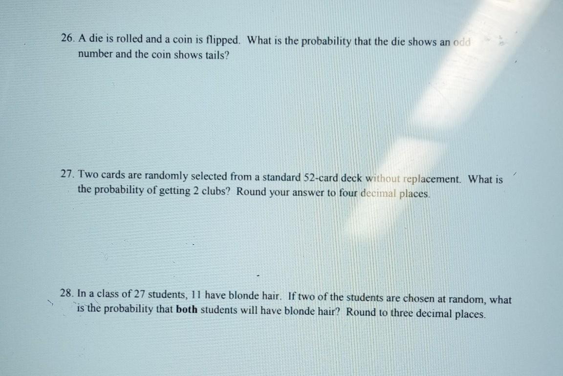 - 26) probability = 1/4