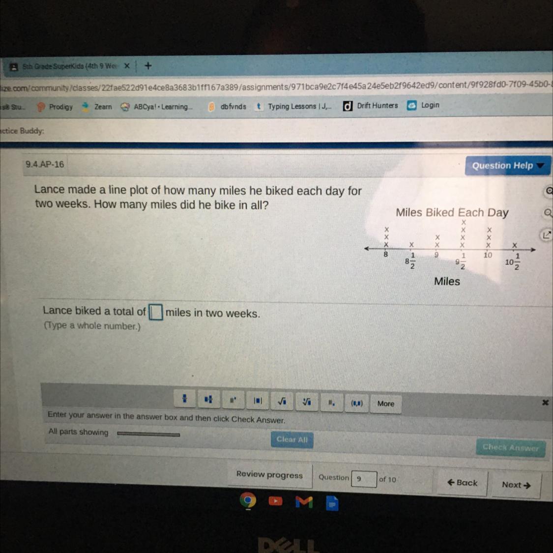 V = (base area x height)/3 = (80 x 9)/3 = 240 mi^3