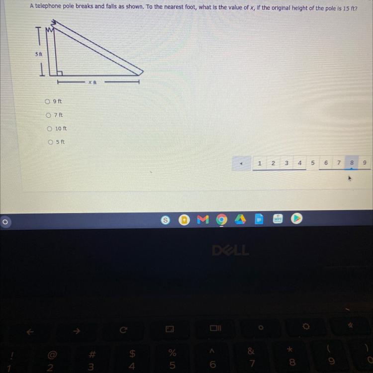 now apply pythegorean theorem: 5 squared + x squared= 10 squared