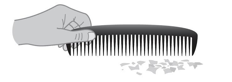 A student rubs a comb on a cloth. She then holds the comb 30 centimeters above some small pieces of paper on a table, but the pa