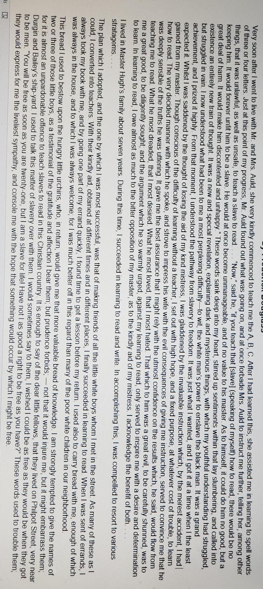 Read the passage. Then answer the questions 1&2: 1) How do Douglass's word choices contribute to the tone of the excerpt fro