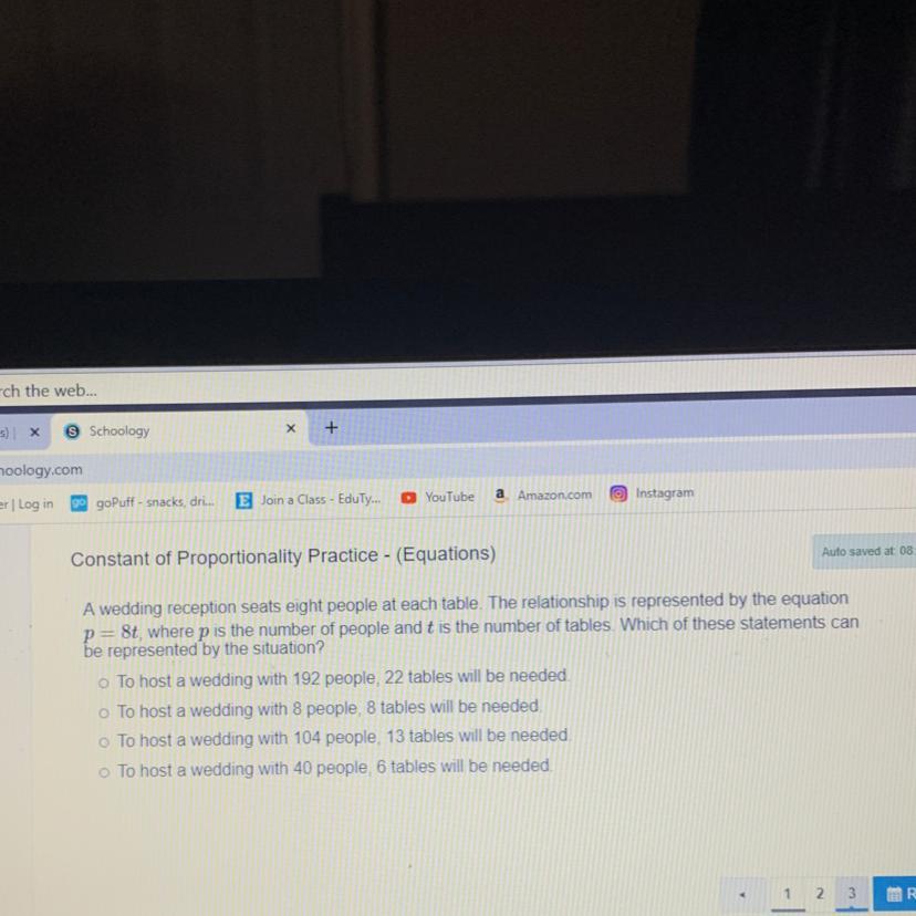 Given that the relationship between the number of people 'p' and the number of tables 't'.