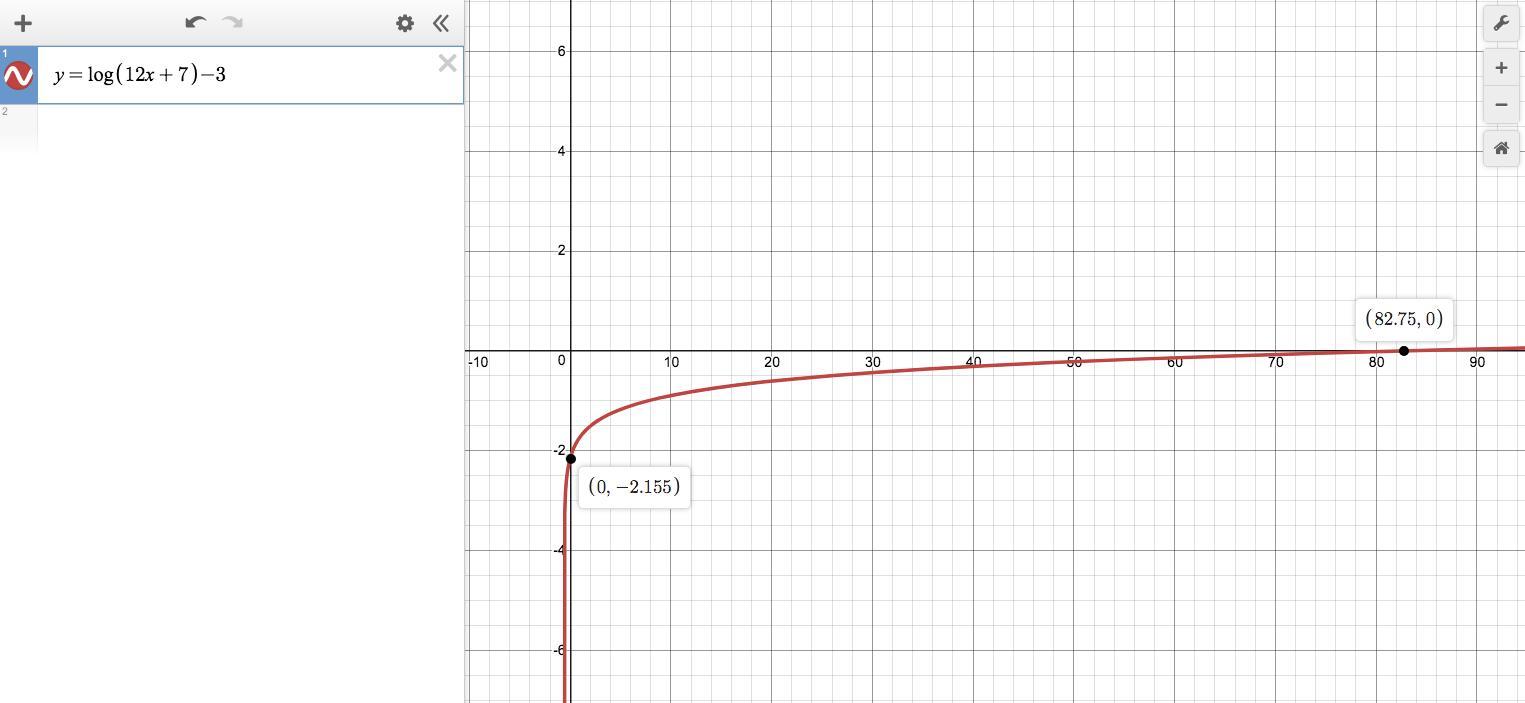 y = log(12·0 +7) -3 = log(7) -3 ≈ -2.1549 ≈ -2.15