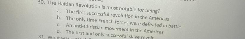 The Haitian Revolution was a successful insurrection by self-liberated slaves against French colonial rule in Saint-Domingue, now the sovereign state of Haiti. The revolt began on 22 August 1791, and ended in 1804 with the former colony's independence.