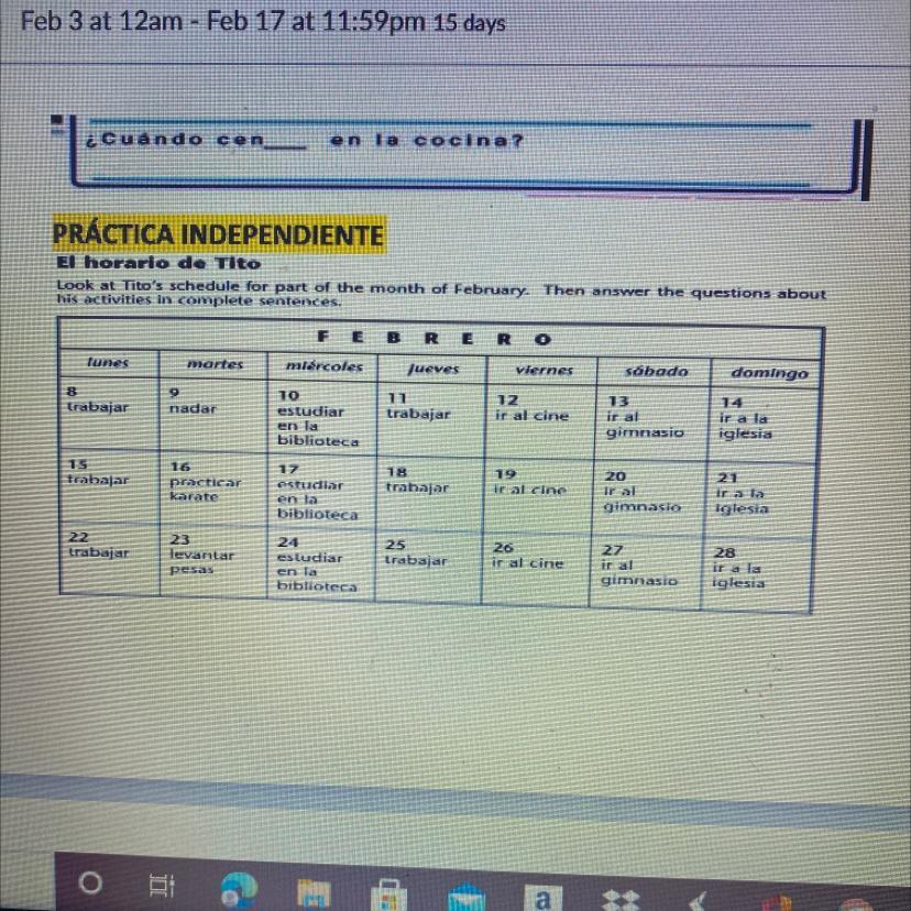 6. Busqué un vestido nuevo a las cinco el miércoles.