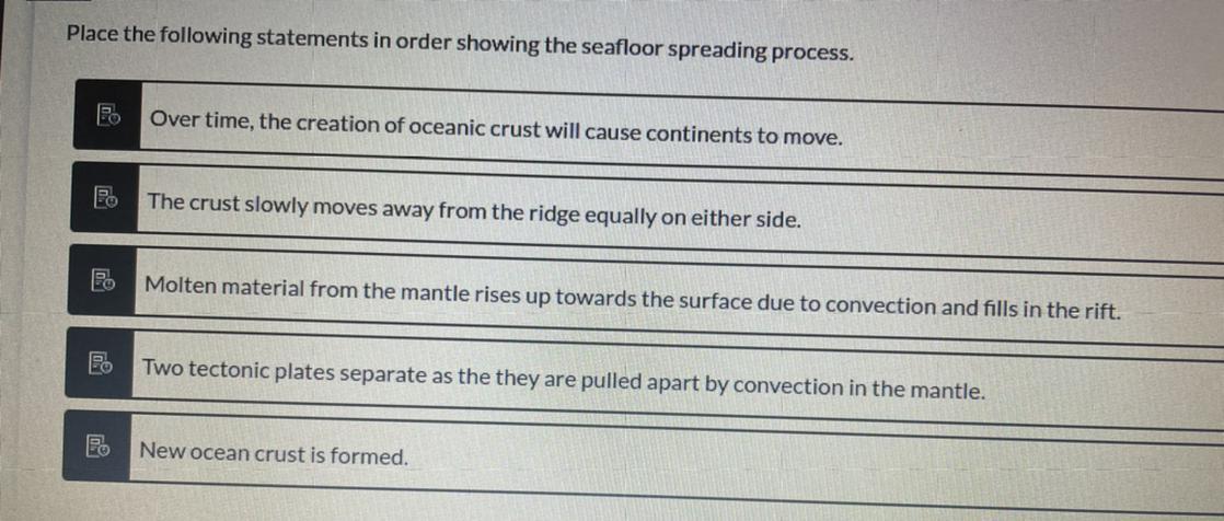 5- Overtime, the creation of oceanic crust will cause continents to move.
