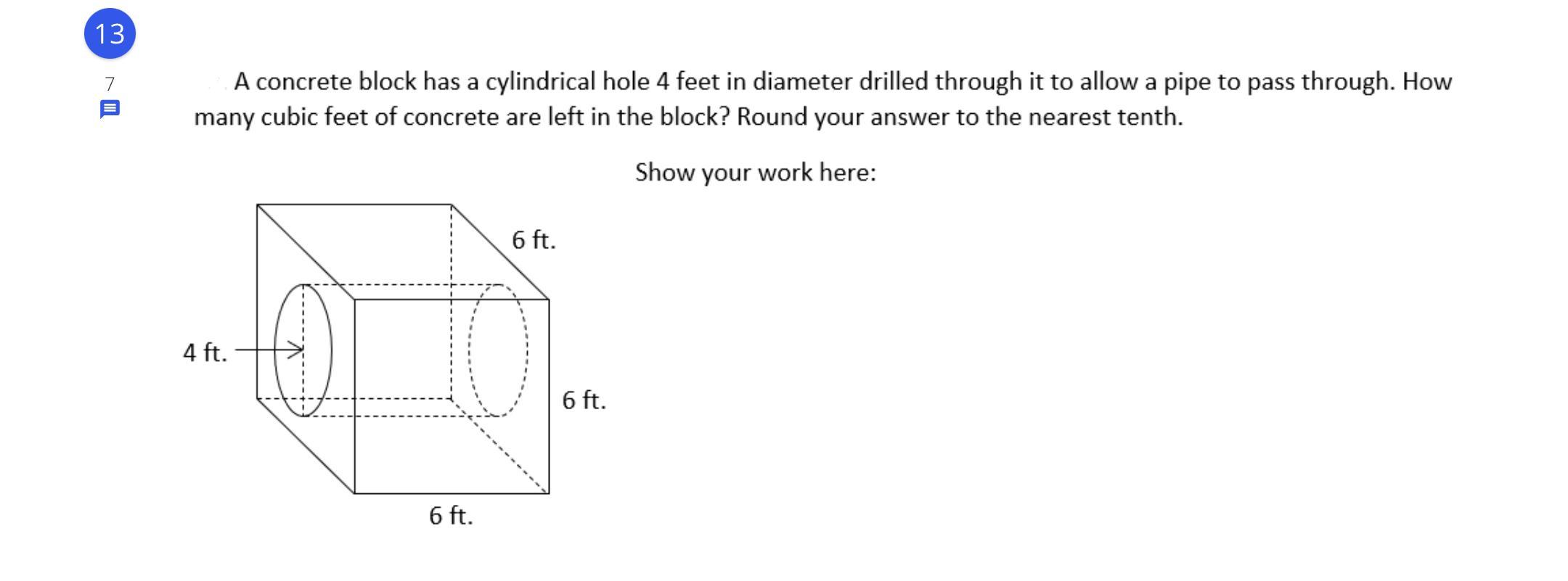 V = volume of block - volume of cylinder