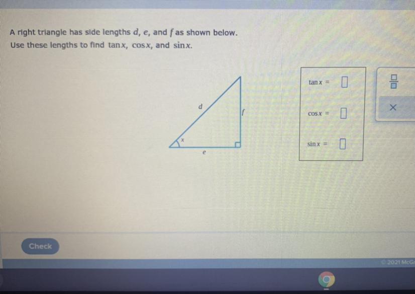 tan x = \frac{f}{e}