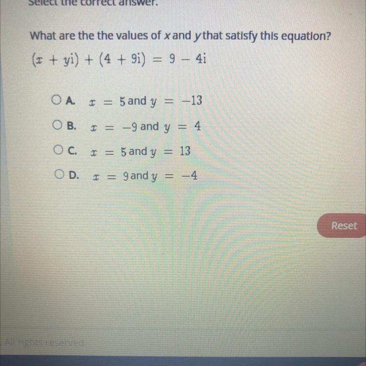 Answer: Option A; x = 5, y = -13