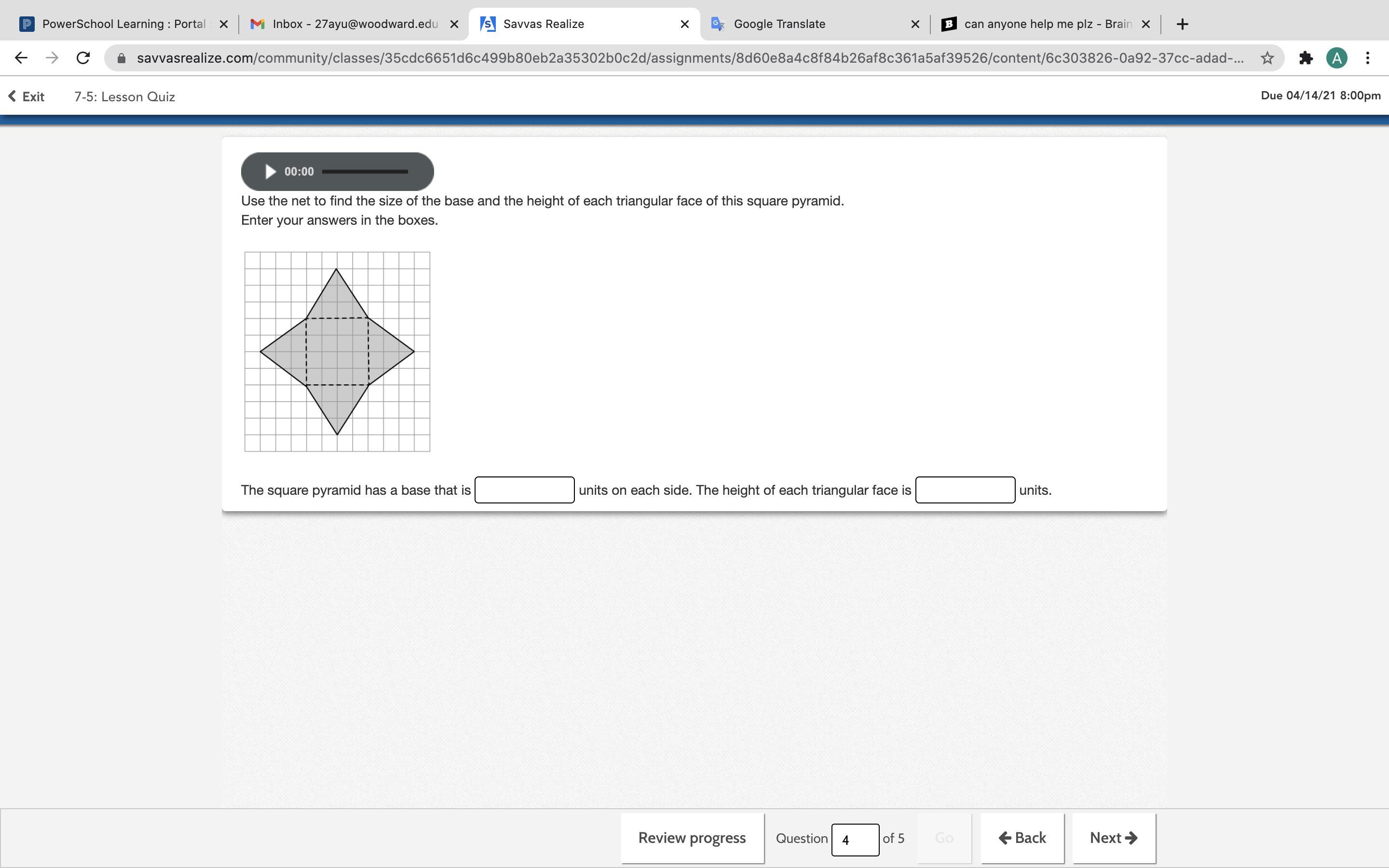 A= 1/2 bxh because if you are trying to find area you have to use the the formula A=1/2 bxh