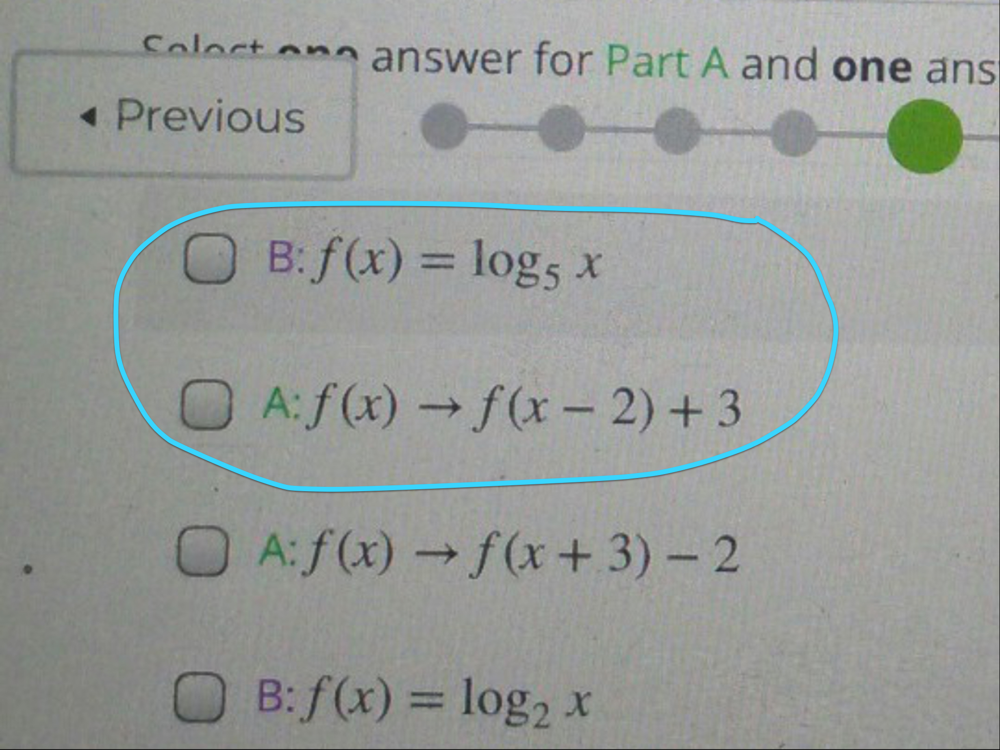 ... g(x) = f(x -2) +3