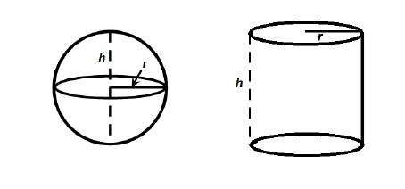 We know that the height of cylinder is equal to the diameter of sphere so h=2*r------> equation 1