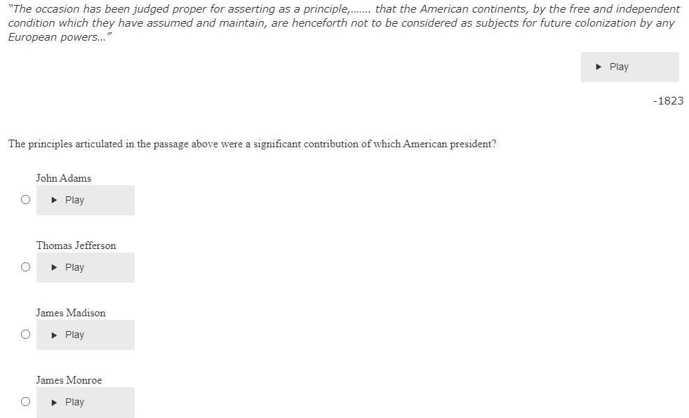 18) The principles articulated in the passage above were a significant contribution of which American president? HELP ASAP (CAME