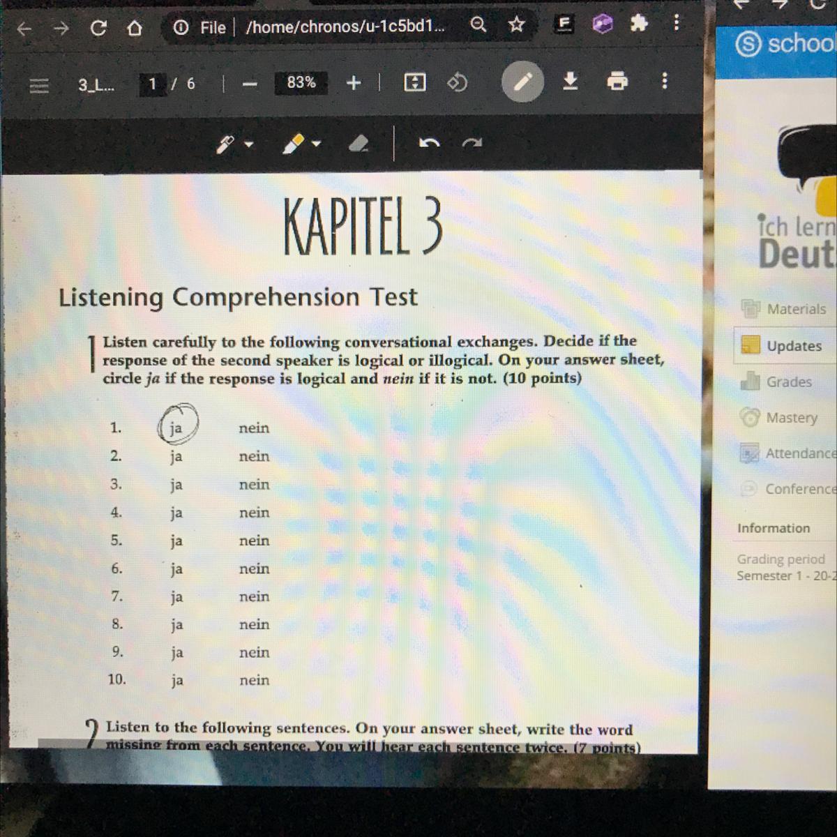 Answer: you got it right ja means yes so it is right