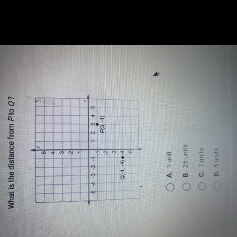 What is the distance from P to Q? A. 1 unit B. 25 units C. 7 units D. 5 units